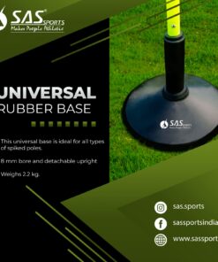 A Universal Rubber Base is a heavy-duty, non-slip base designed to hold various sports training equipment, such as poles, agility mannequins, or corner flags, without needing to insert them into the ground.